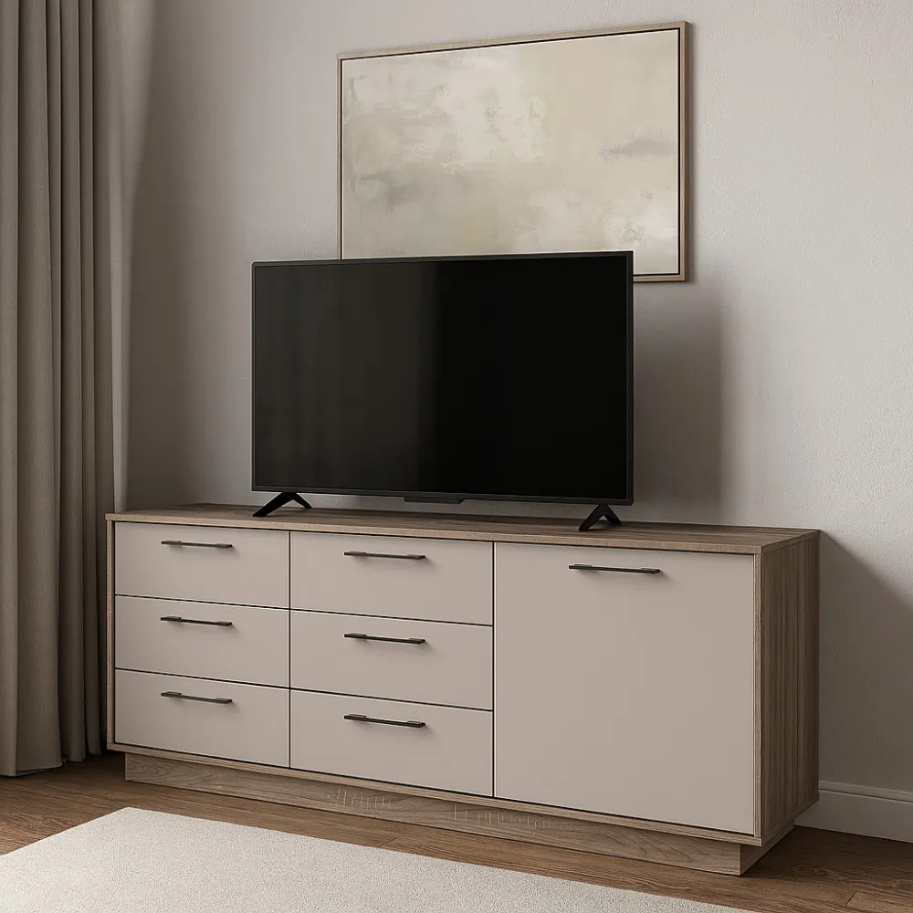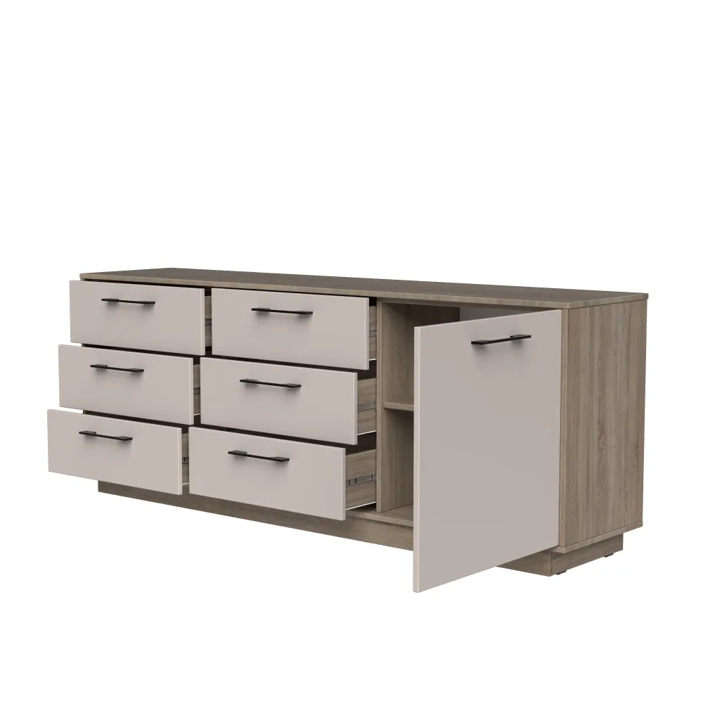 Комод К6 6Я1Д 700х1800х400 мм корпус ДСП Дуб Винтаж Оксид фасад ДСП Кашемир