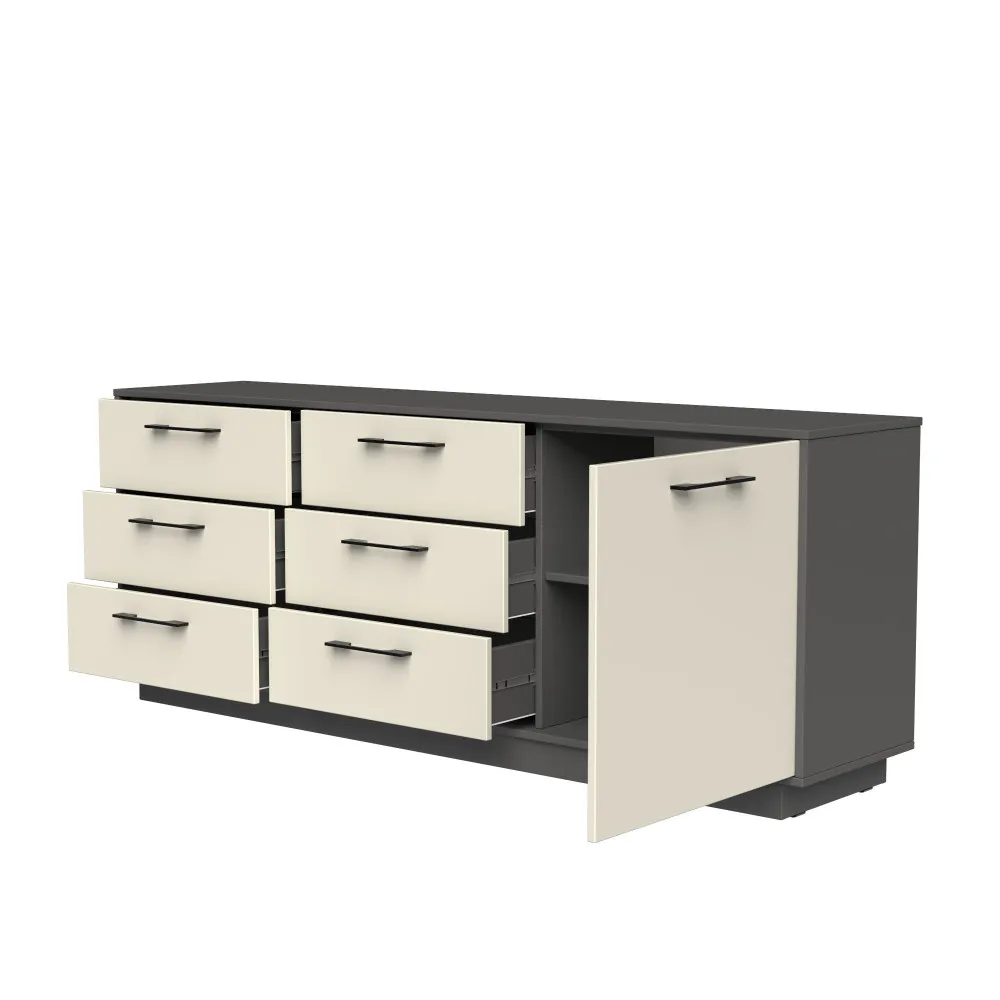 Комод К6 6Я1Д 700х1800х400 мм корпус ДСП Серый Графит фасад МДФ краска RAL9001 (Свет-беж)