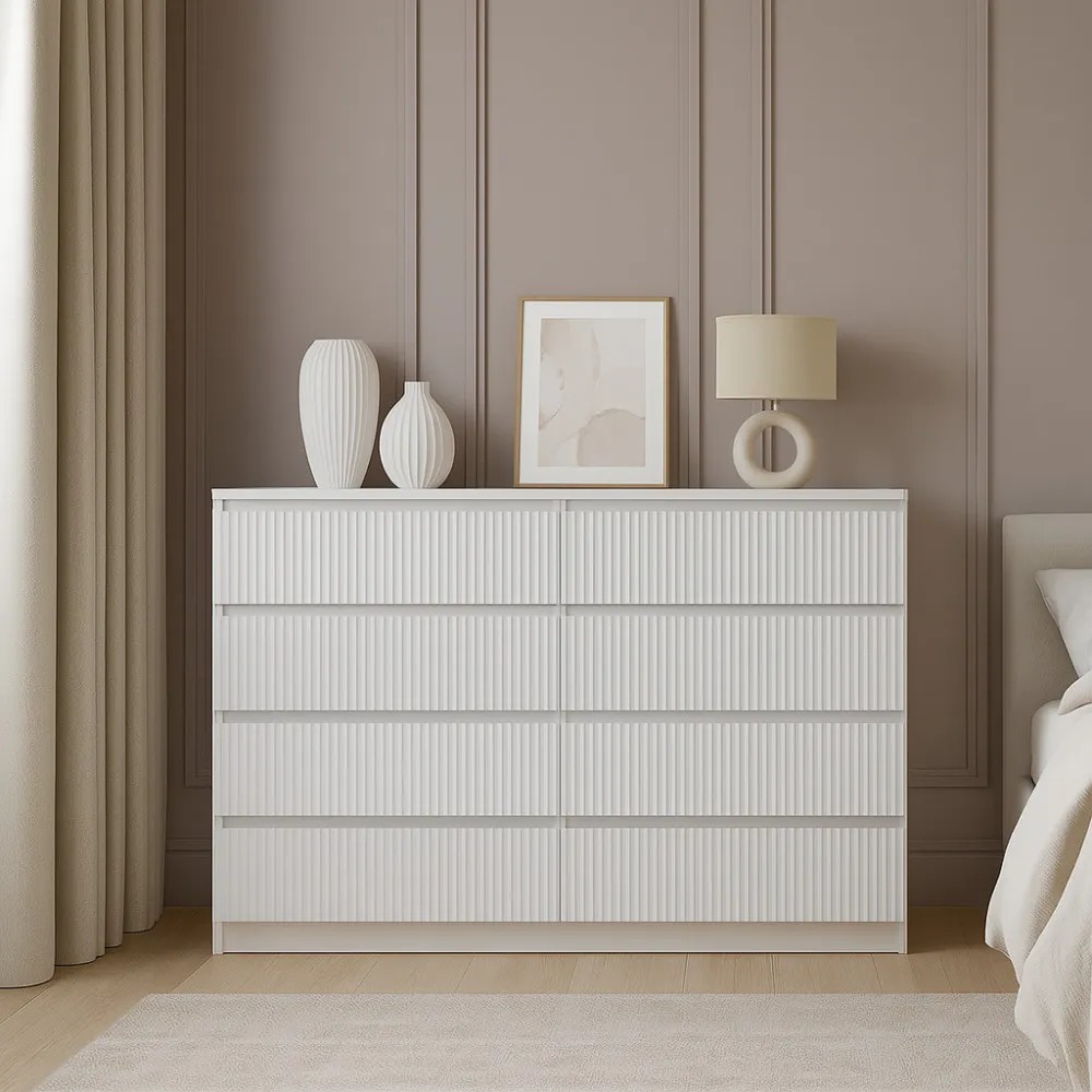 Комод К9 8Я 980х1600х430 мм корпус ДСП Белый фасад МДФ краска RAL9003 (Белый) фрезерование Плаше Гросс