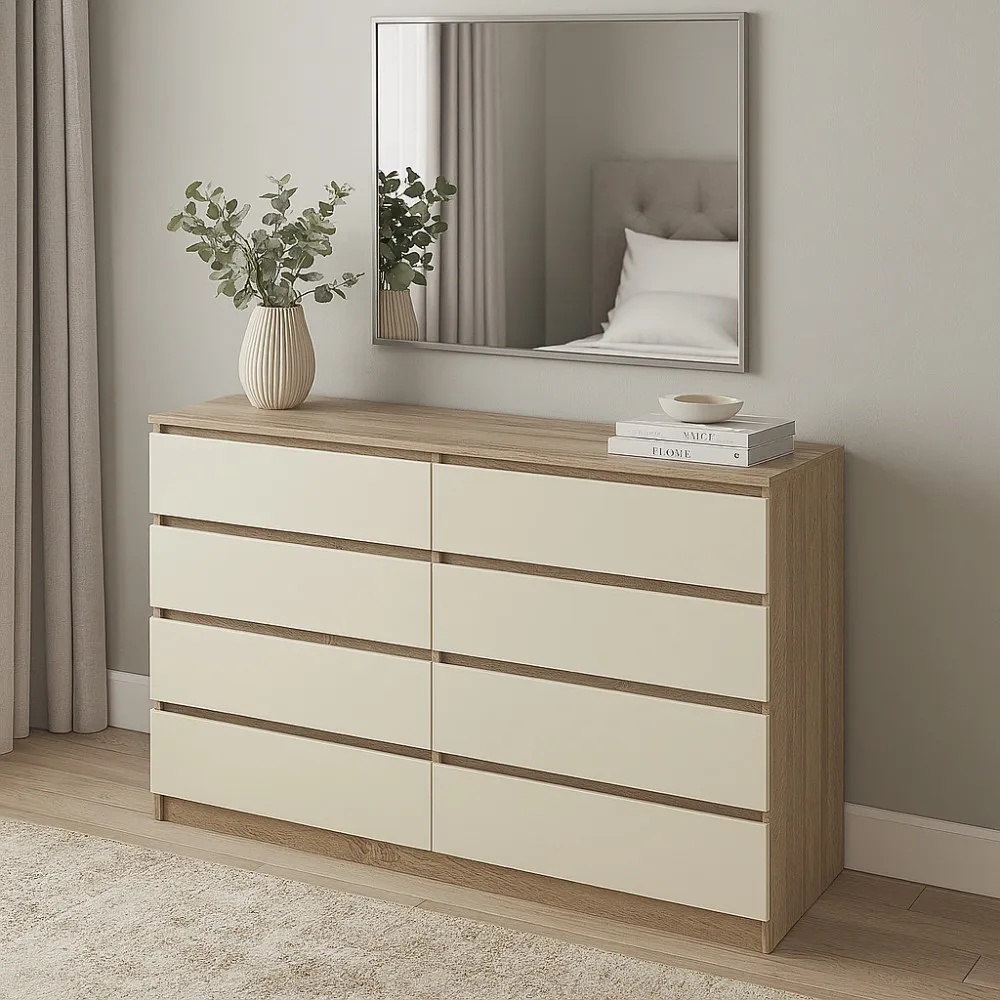 Комод К9 8Я 980х1600х430 мм корпус ДСП Дуб Сонома фасад МДФ краска RAL9001 (Свет-беж)
