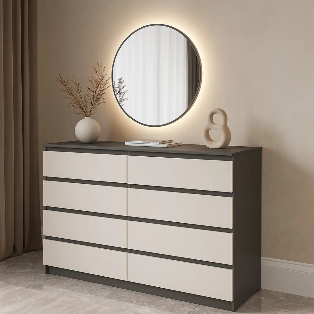 Комод К9 8Я 980х1600х430 мм корпус ДСП Серый Графит фасад МДФ краска RAL9001 (Свет-беж)