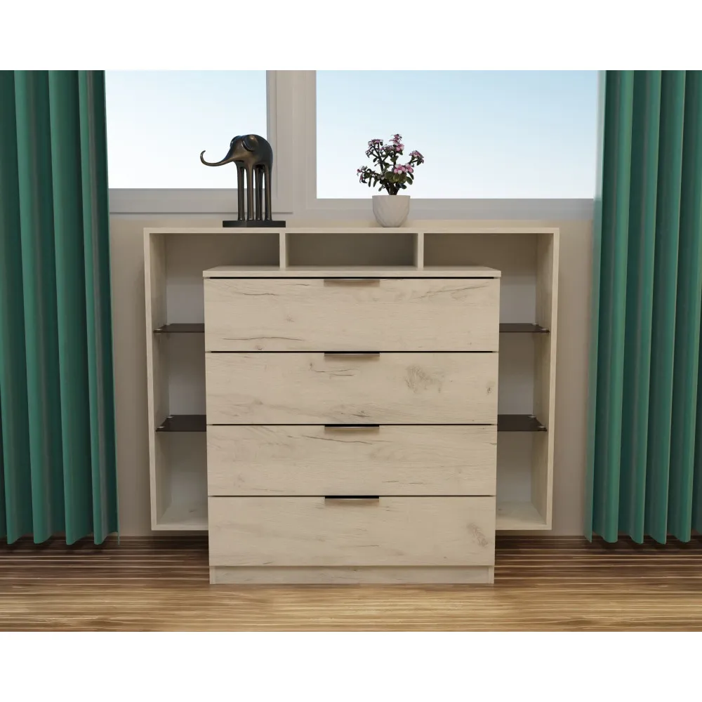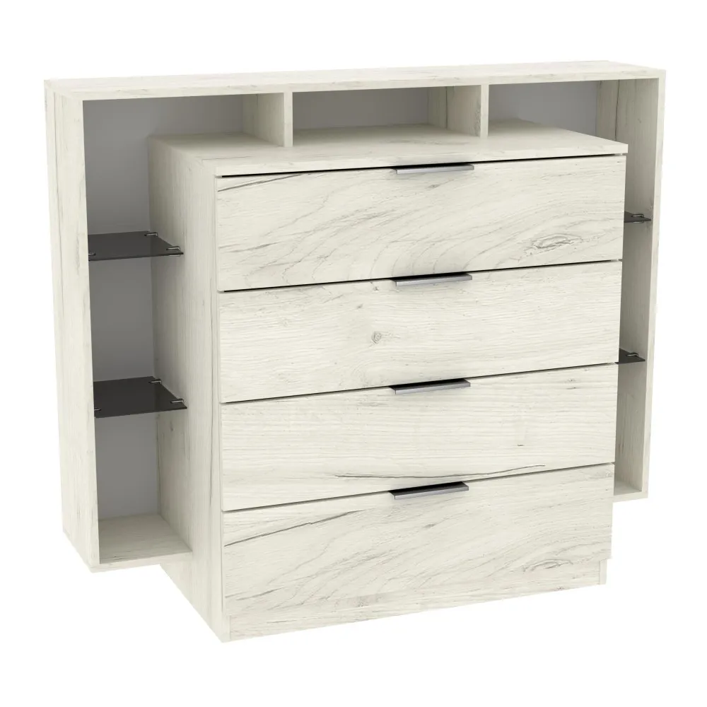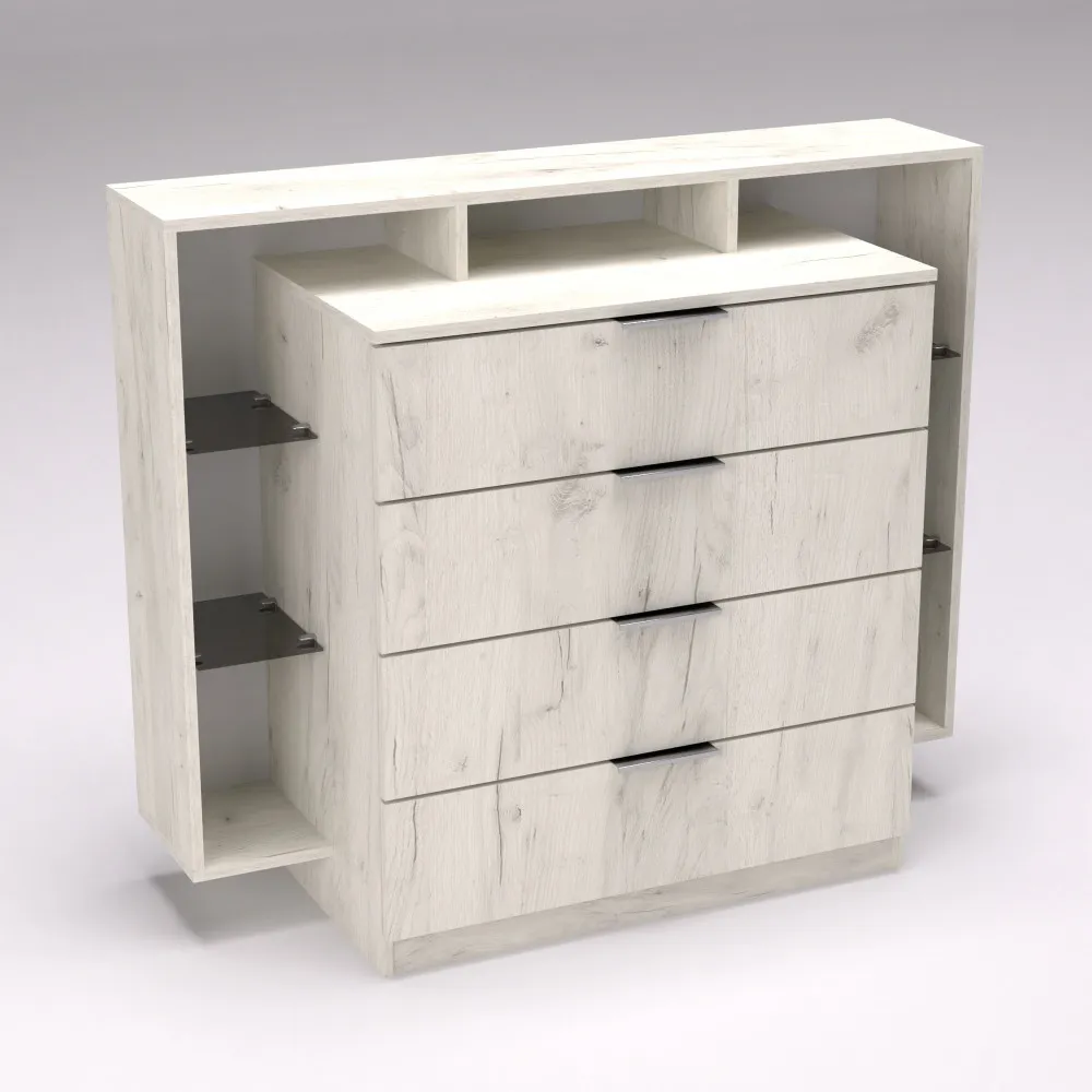 Характеристики Комод Кристал, Дуб Крафт Белый, 1200/450/1000
