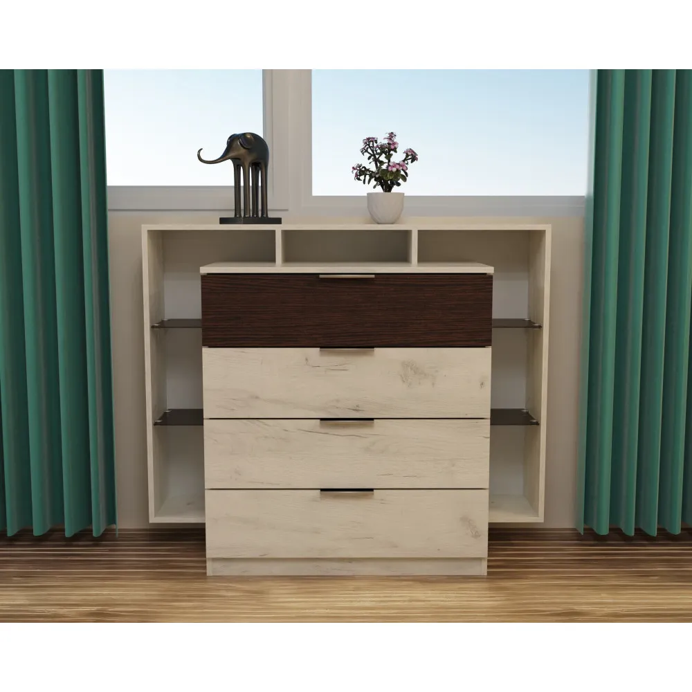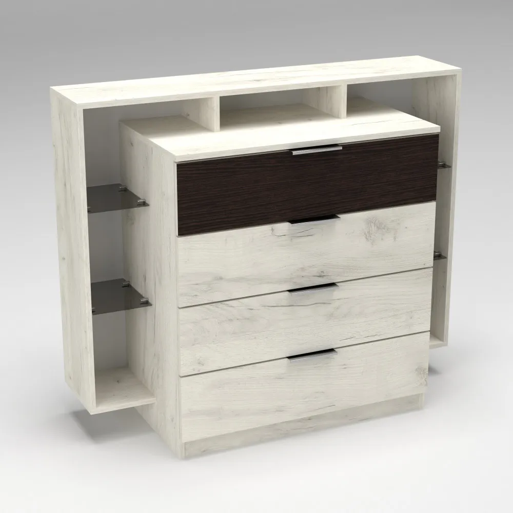 Характеристики Комод Кристал, Дуб Крафт Белый/Венге Магия, 1200/450/1000