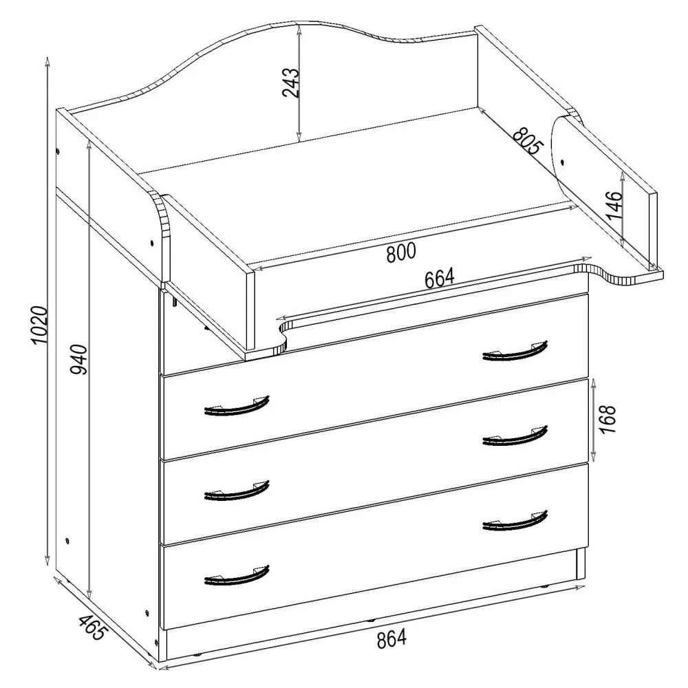 Характеристики Комод пеленальный №1, Дуб Сонома Трюфель, 864/465/1020