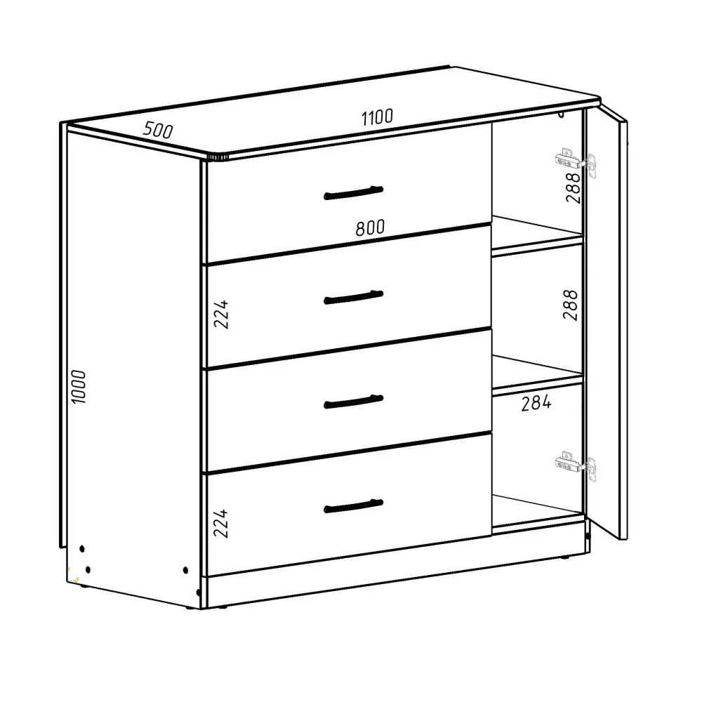 | Глубина, мм500 | Высота, мм1000 | Ширина, мм1100 |