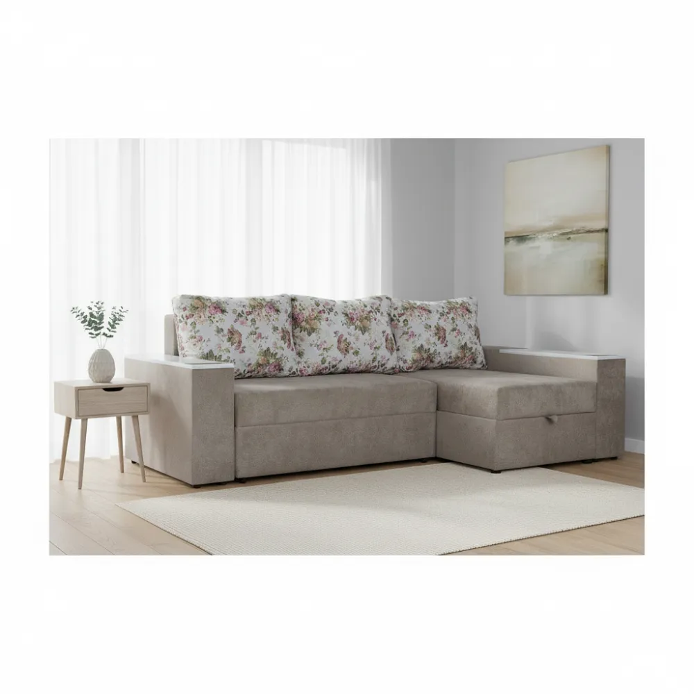 Угловой диван Гармония способен удовлетворить Ваши самые высокие требования. В подлокотниках есть ниши, а накладки выполнены из ДСП. Каркас дивана деревянный из бруса хвойных пород, ДСП, ДВП. Имеется вместительный бельевой ящик. Размер спального места, мм: 1900х1500 или 1900х1900.Подробнее об этом можно узнать, позвонив нашему менеджеру.