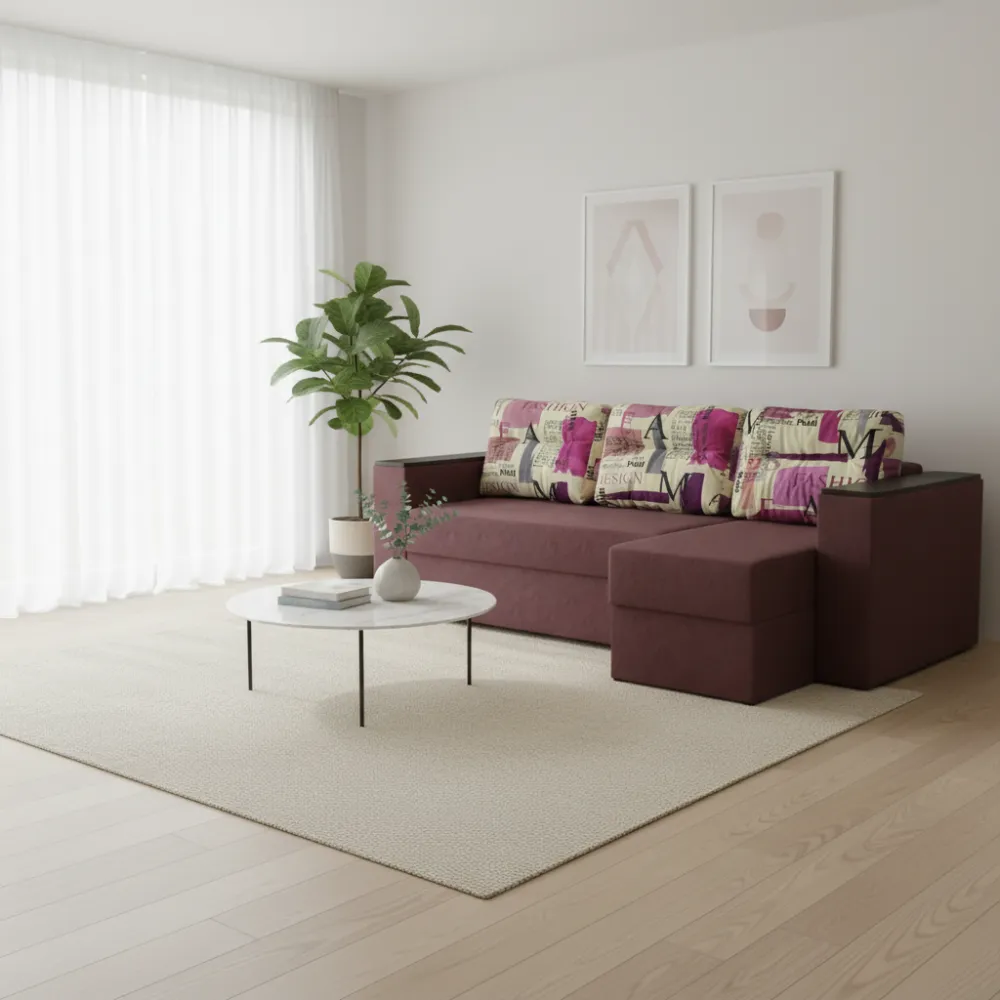 Характеристики Угловой диван Гранд 3х1 бордовый