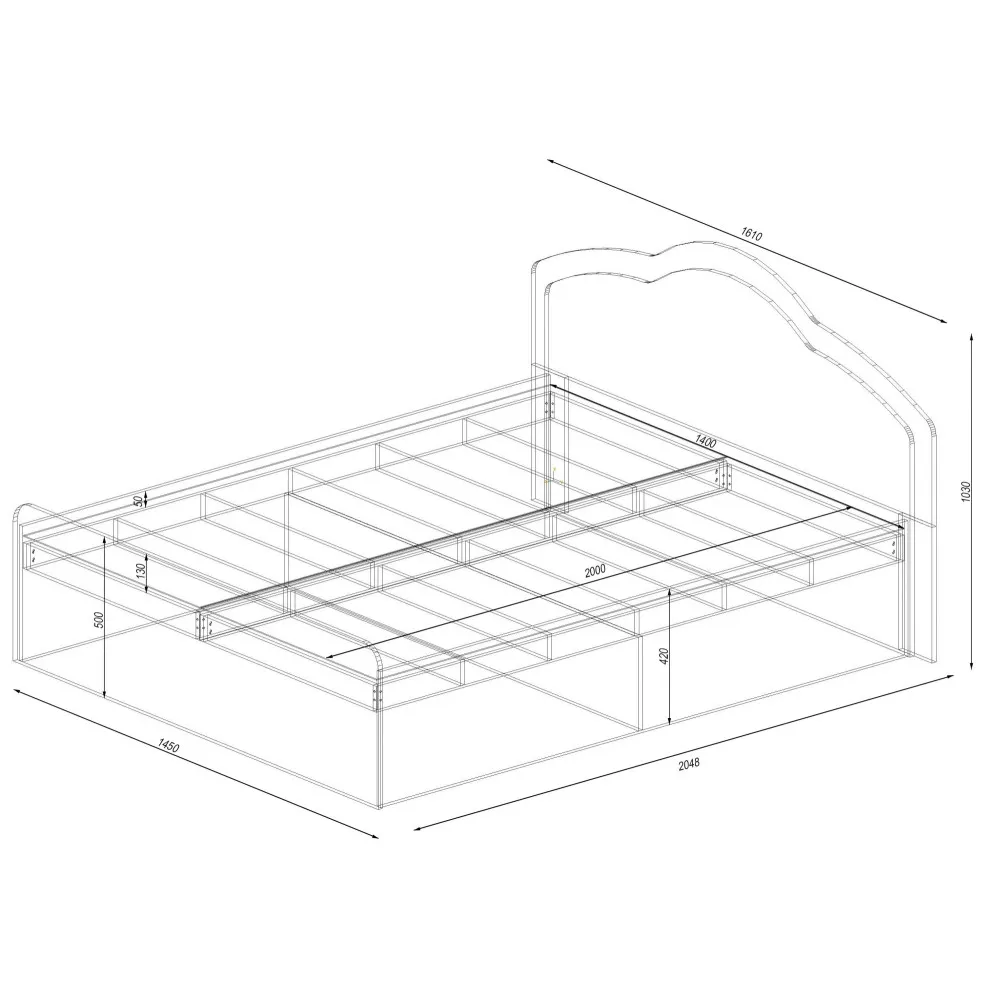 Характеристики Кровать Диана двуспальная, Белый, 2048х1610х1030