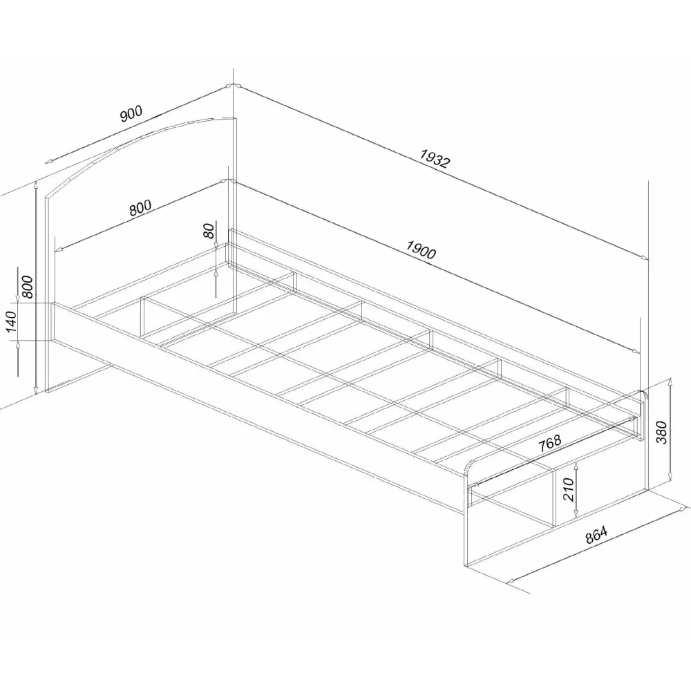 Характеристики Кровать односпальная L-1, Дуб Конкордия, 1930х900х800