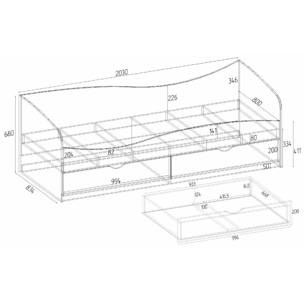 | Ширина, мм2030х834х860 | Спальное место80х200 |