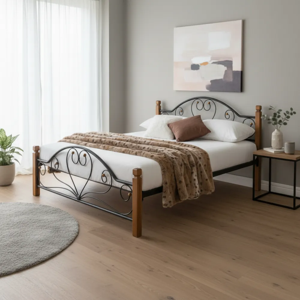 Полуторная кровать 140x200 Металл-Дизайн Джоконда деревянные ножки