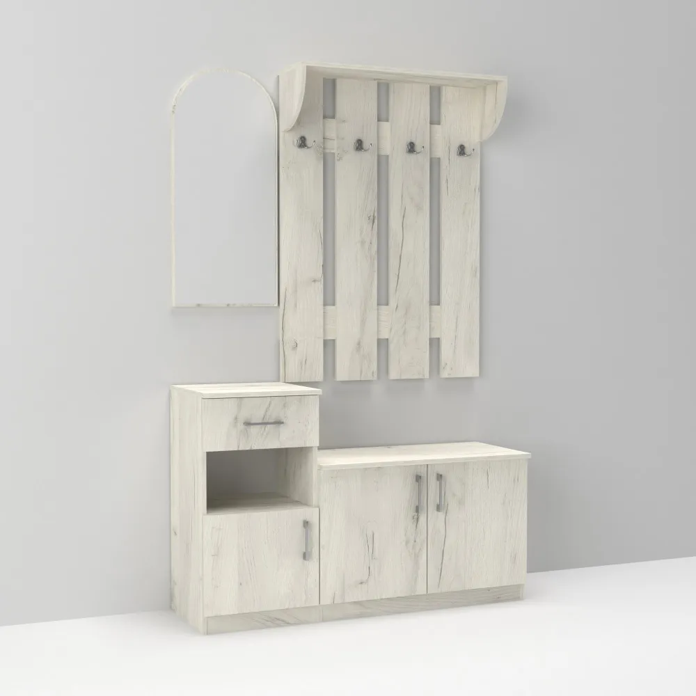 Прихожая Алиса, Дуб Крафт Белый, 1200/400/1880