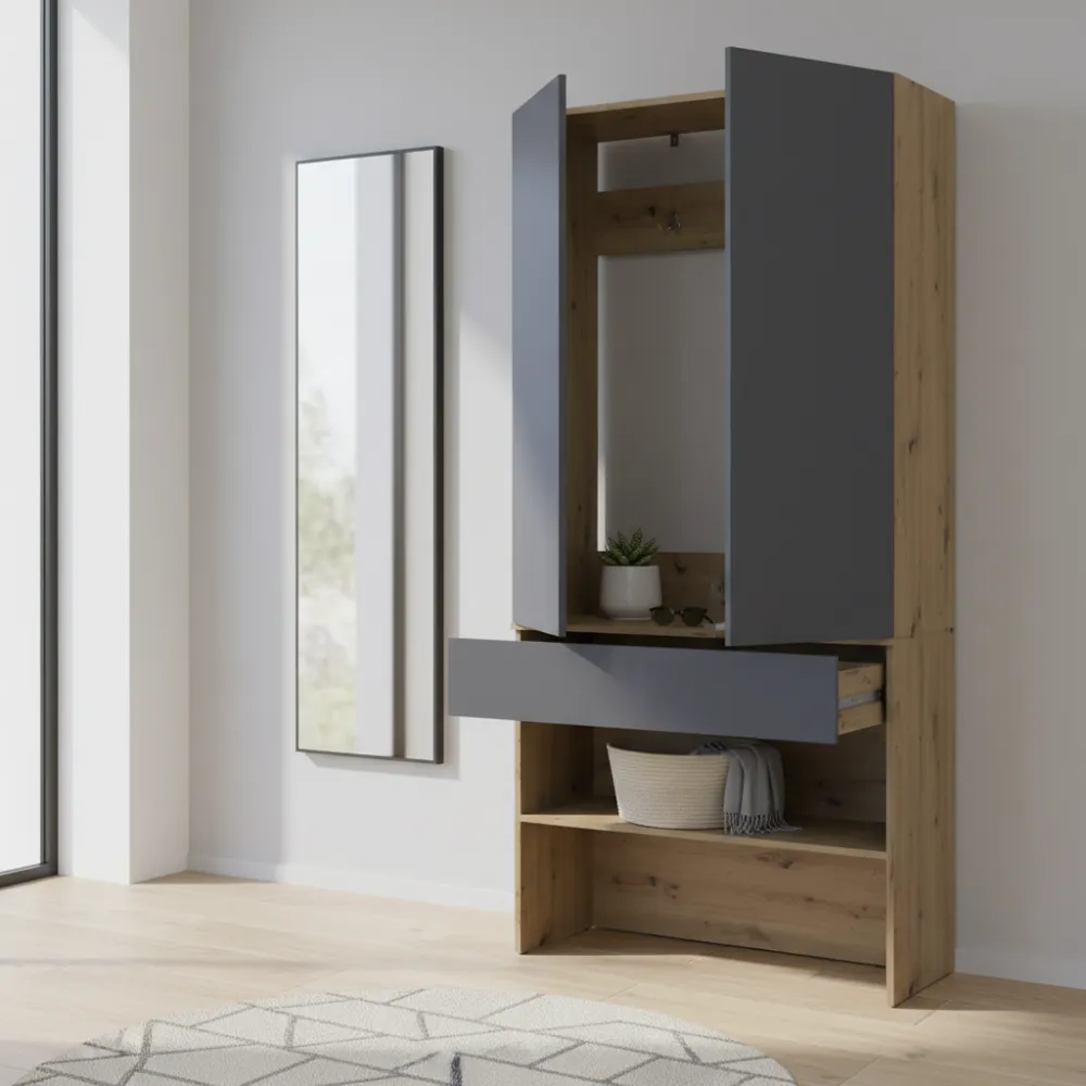 Прихожая Doros Сплит Дуб Артизан/Графит ДСП 94х39х200 (44900271)