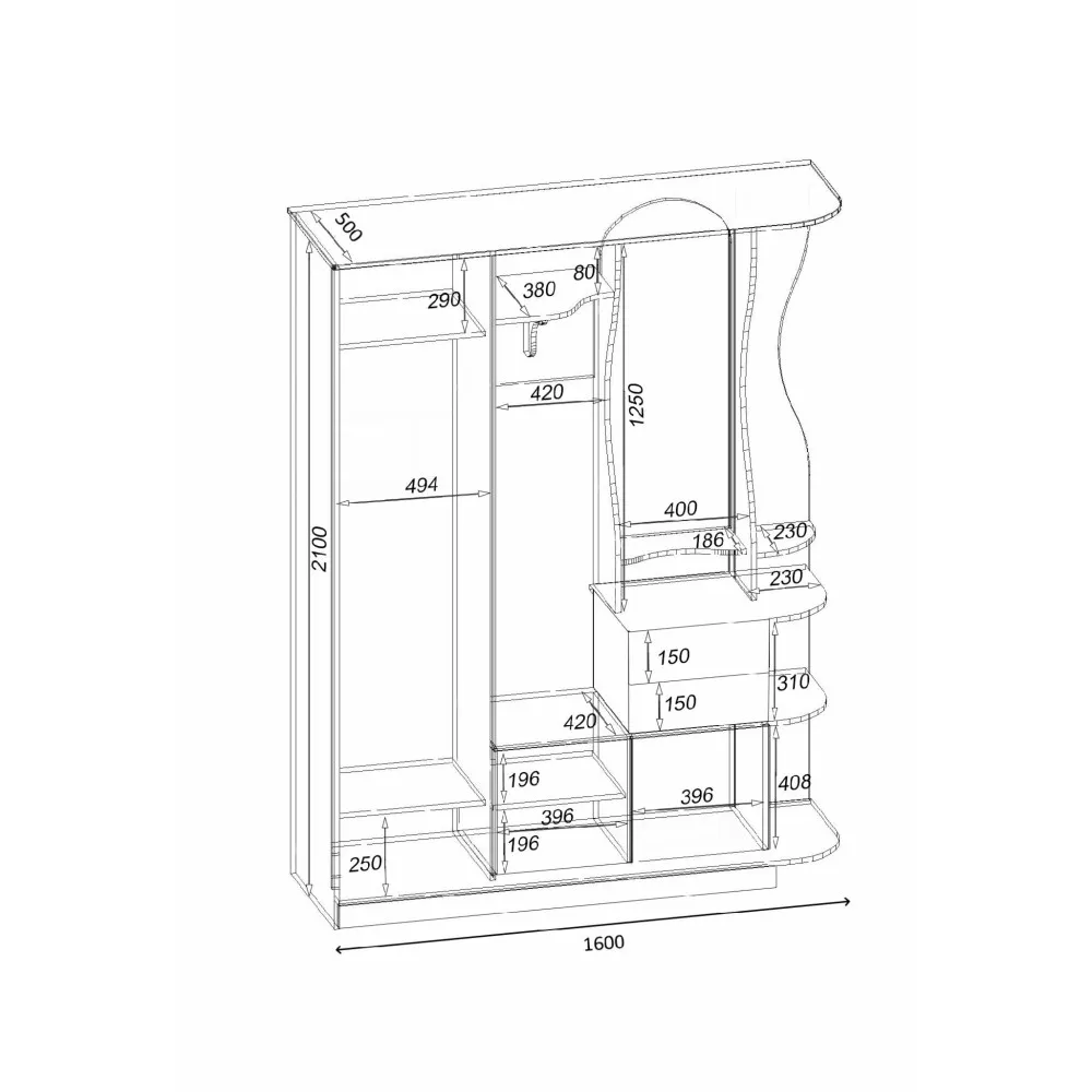 Характеристики Прихожая Люкс-купе LUX, Дуб Сонома, 1600/500/2100
