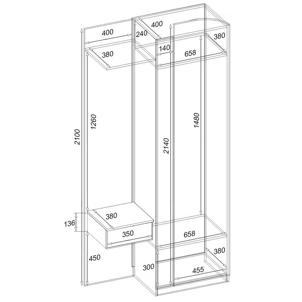 | Глубина, мм400 | Высота, мм2140 | Ширина, мм1000 |