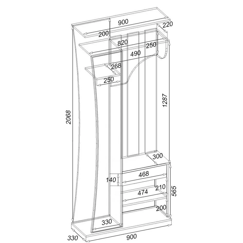 | Глубина, мм330 | Высота, мм2100 | Ширина, мм900 |
