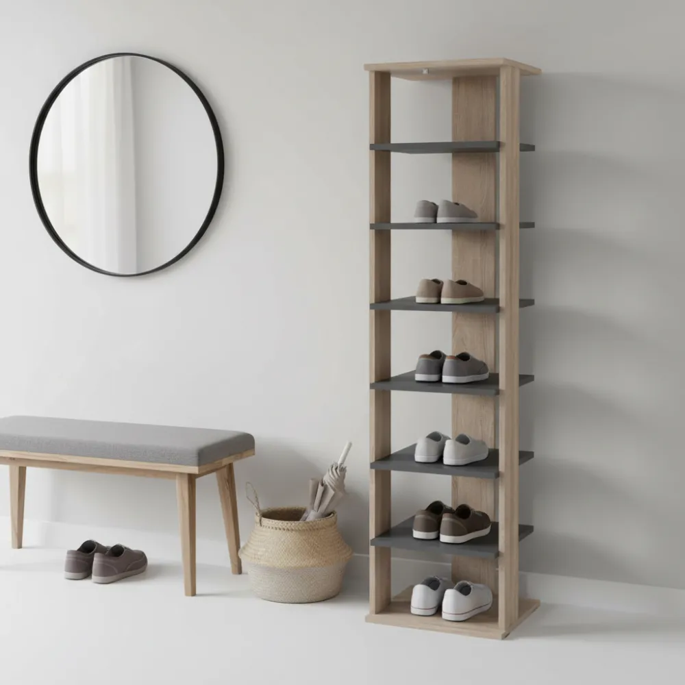 Характеристики Полочка для обуви Doros Паоло Дуб Сонома/Графит 38.4х38.4х153.4 (41516042)