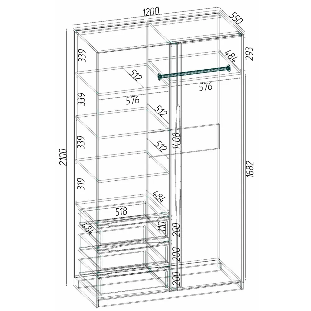 | Ширина, мм1200х550х2100 |