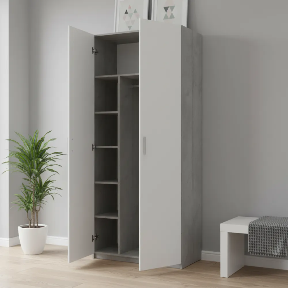 Распашной шкаф для одежды Doros Кен Бетон / Белый 2 ДСП 90х52х210 (80737020)