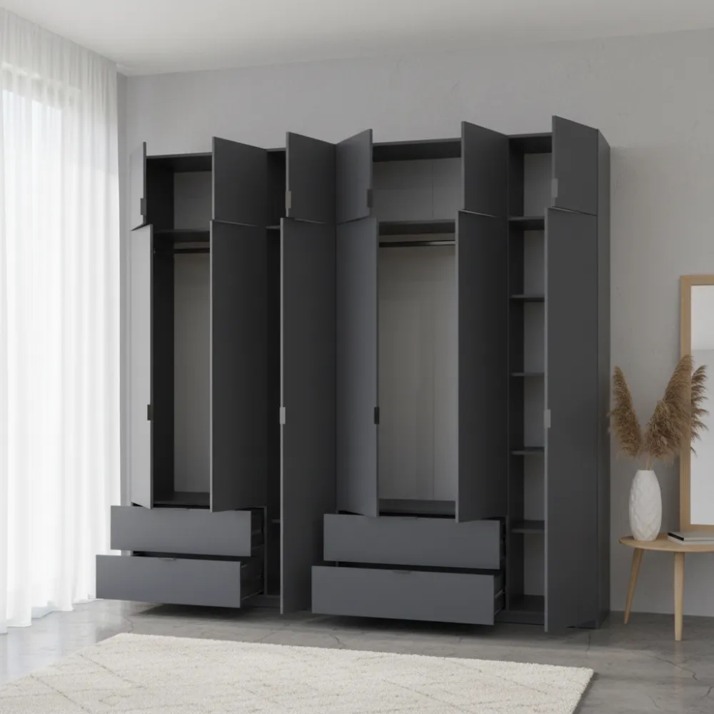 Распашной шкаф для одежды Doros Лукас Графит 3+3 ДСП 255х50х240 (42005113)