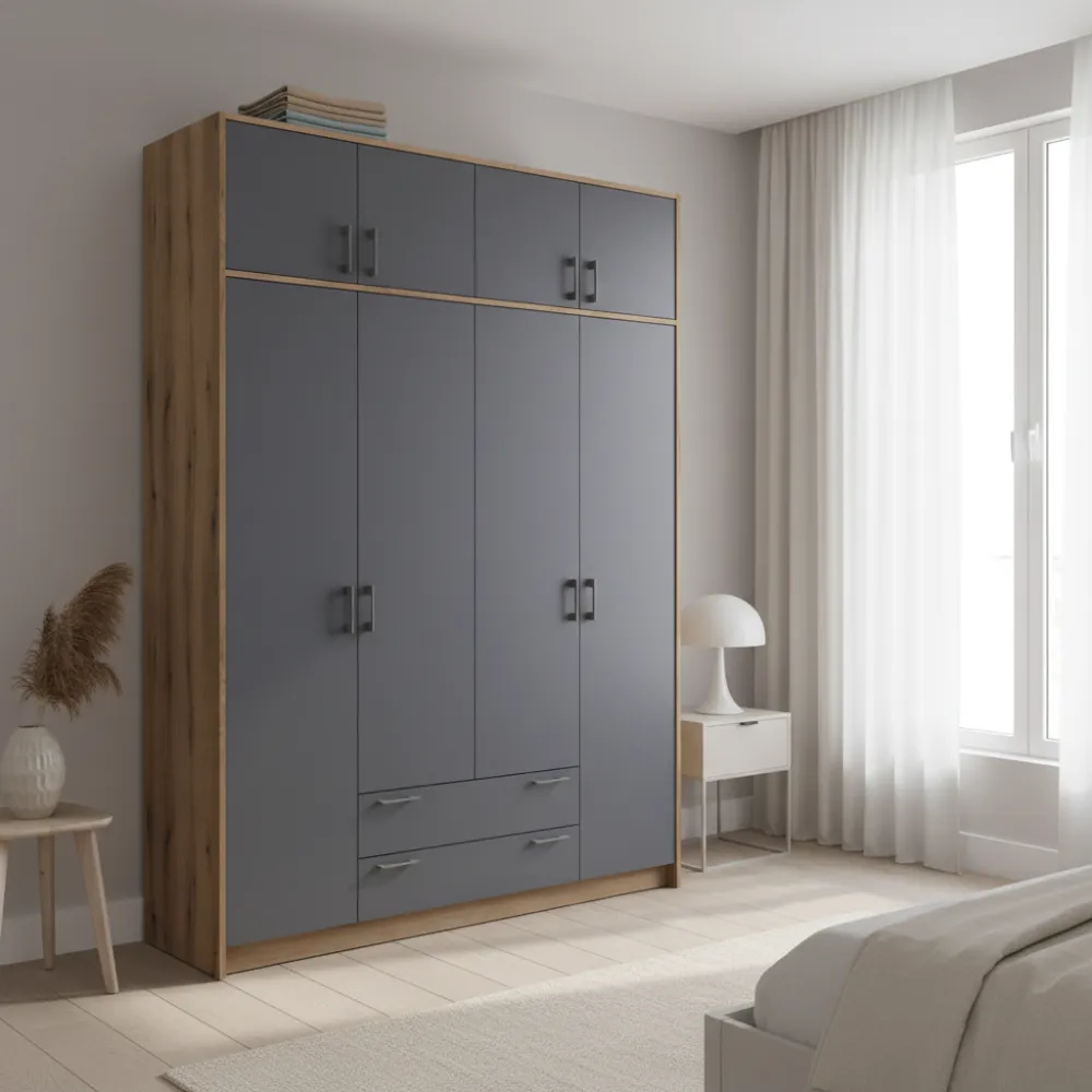 Характеристики Распашной шкаф для одежды Doros Ронди с антресолью Дуб Артизан/Графит 4ДСП 160х52х236 (80737828)
