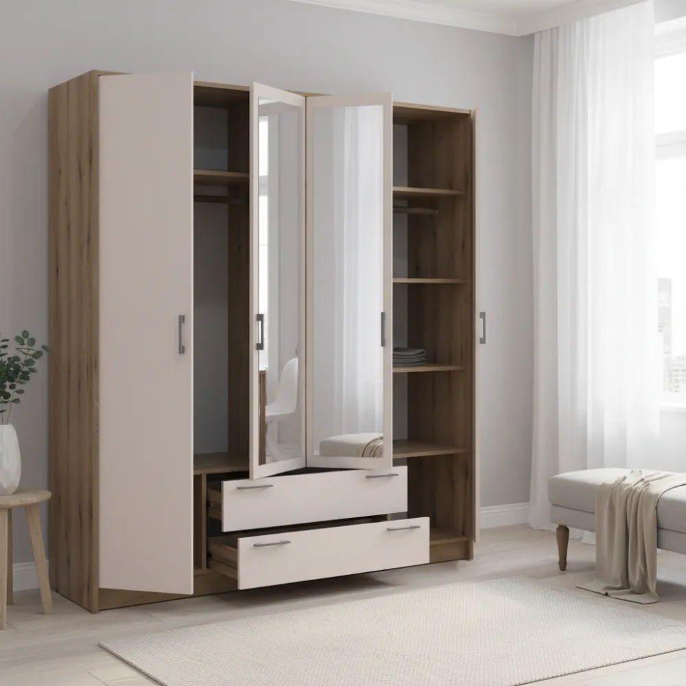 Характеристики Распашной шкаф для одежды Doros Ронди с зеркалом Дуб Артизан/Кашемир 4ДСП 160х52х195 (80737827)
