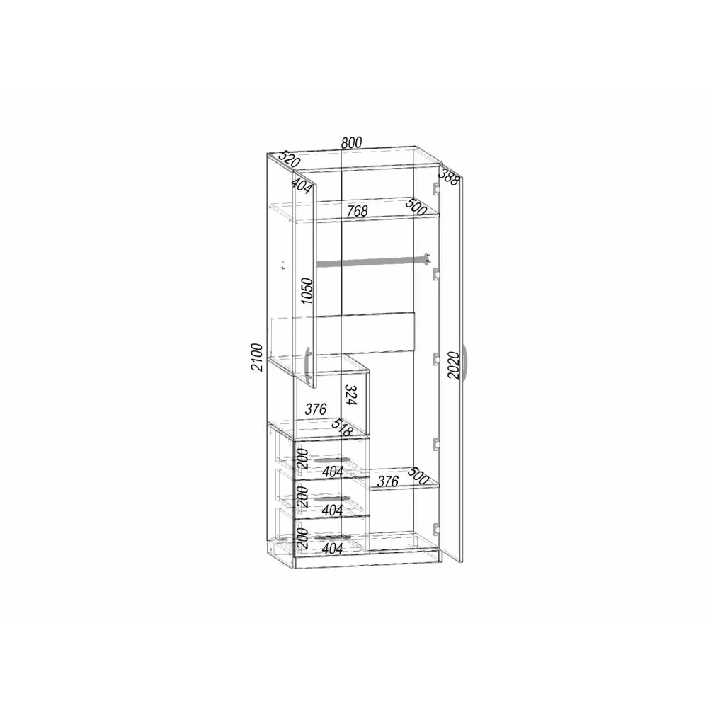 | Глубина, мм520 | Высота, мм2100 | Ширина, мм800 |