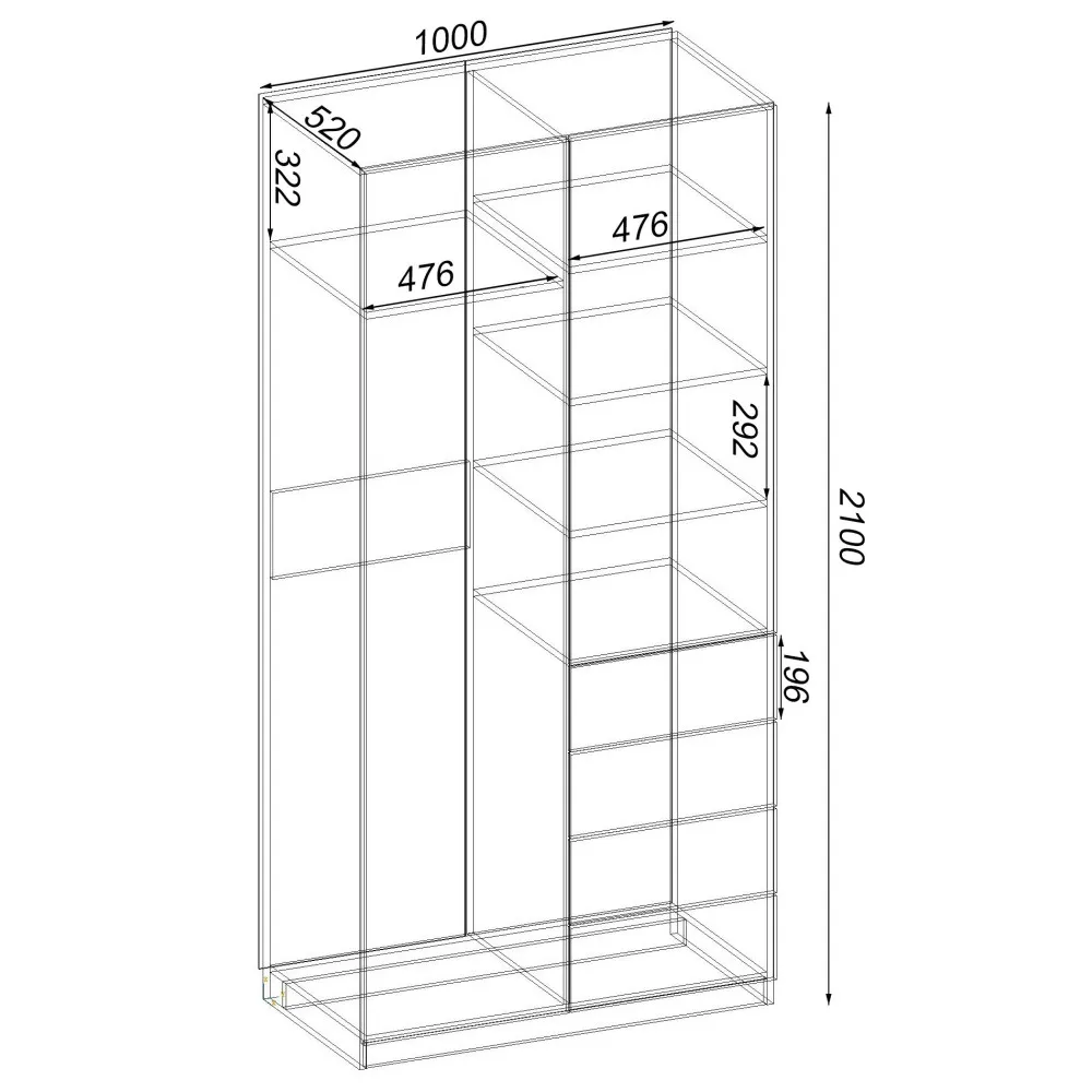 | Ширина, мм1000х520х2100 |