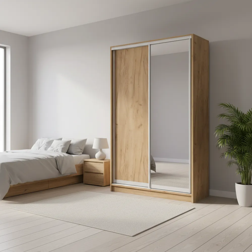 Характеристики Шкаф-купе двухдверный 1400х600х2400 мм Дуб Крафт золотой ДСП + Зеркало EШК 2.2.24.60.14.2