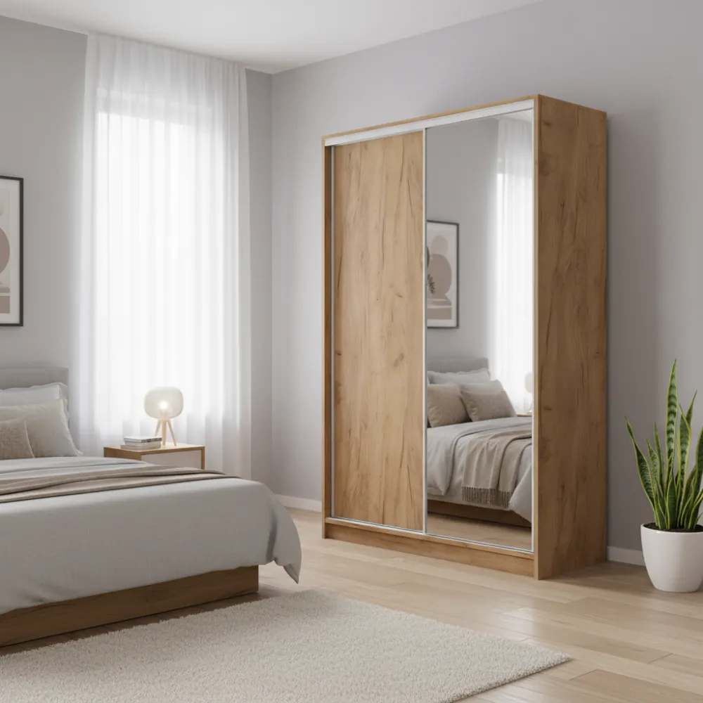 Характеристики Шкаф-купе двухдверный 1400х600х2400 мм Дуб Крафт золотой ДСП + Зеркало EШК 2.3.24.60.14.1