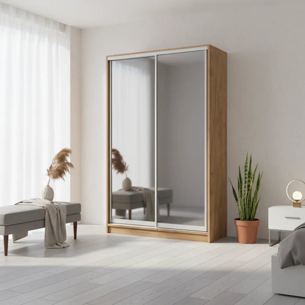 Характеристики Шкаф-купе двухдверный 1400х600х2400 мм Дуб Крафт золотой Зеркало EШК 2.2.24.60.14.1