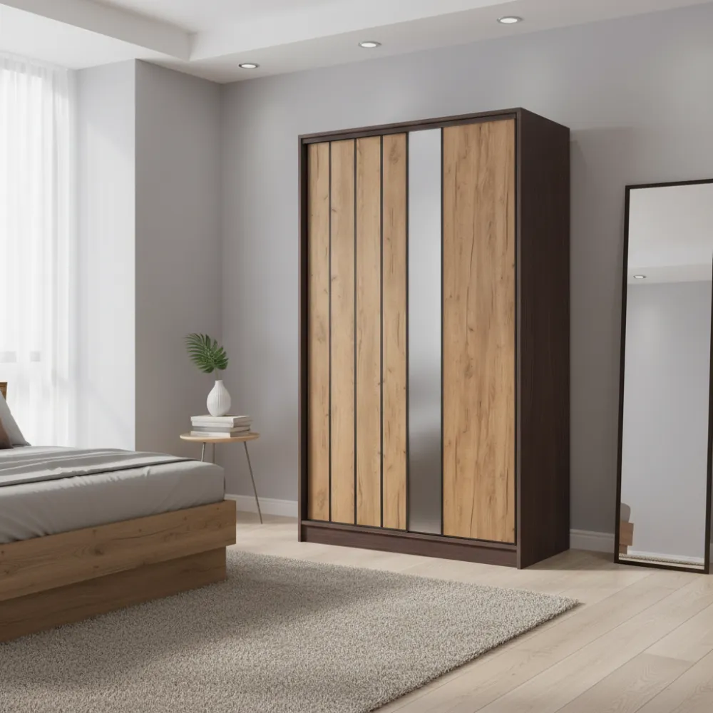 Характеристики Шкаф-купе двухдверный 1400х600х2400 мм Дуб Венге магия ДСП Дуб Крафт золотой EКШК 2.1.24.60.14