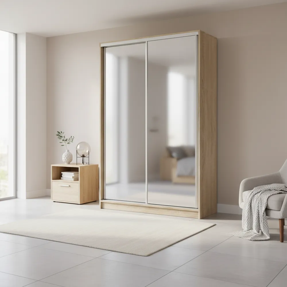 Характеристики Шкаф-купе двухдверный 1500х450х2400 мм Дуб Сонома Зеркало EШК 2.1.24.45.15.1