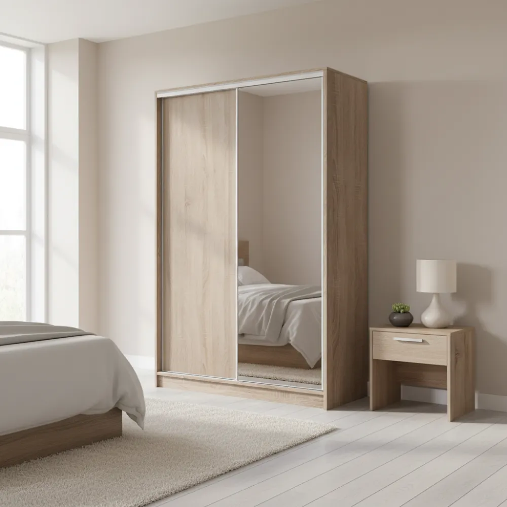 Характеристики Шкаф-купе двухдверный 1500х600х2400 мм Дуб Винтаж оксид ДСП + Зеркало EШК 2.3.24.60.15.1