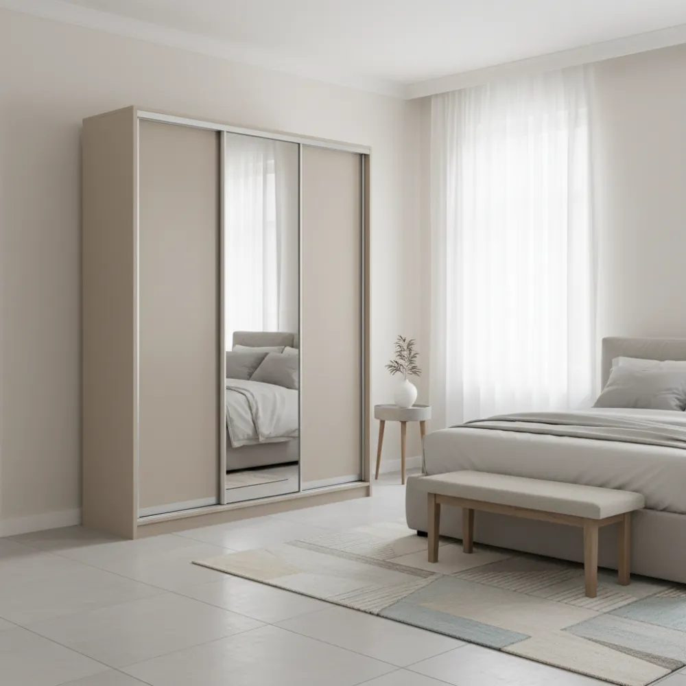 Характеристики Шкаф-купе трехдверный 1800х450х2400 мм Кашемир ДСП + Зеркало EШК 3.3.24.45.18