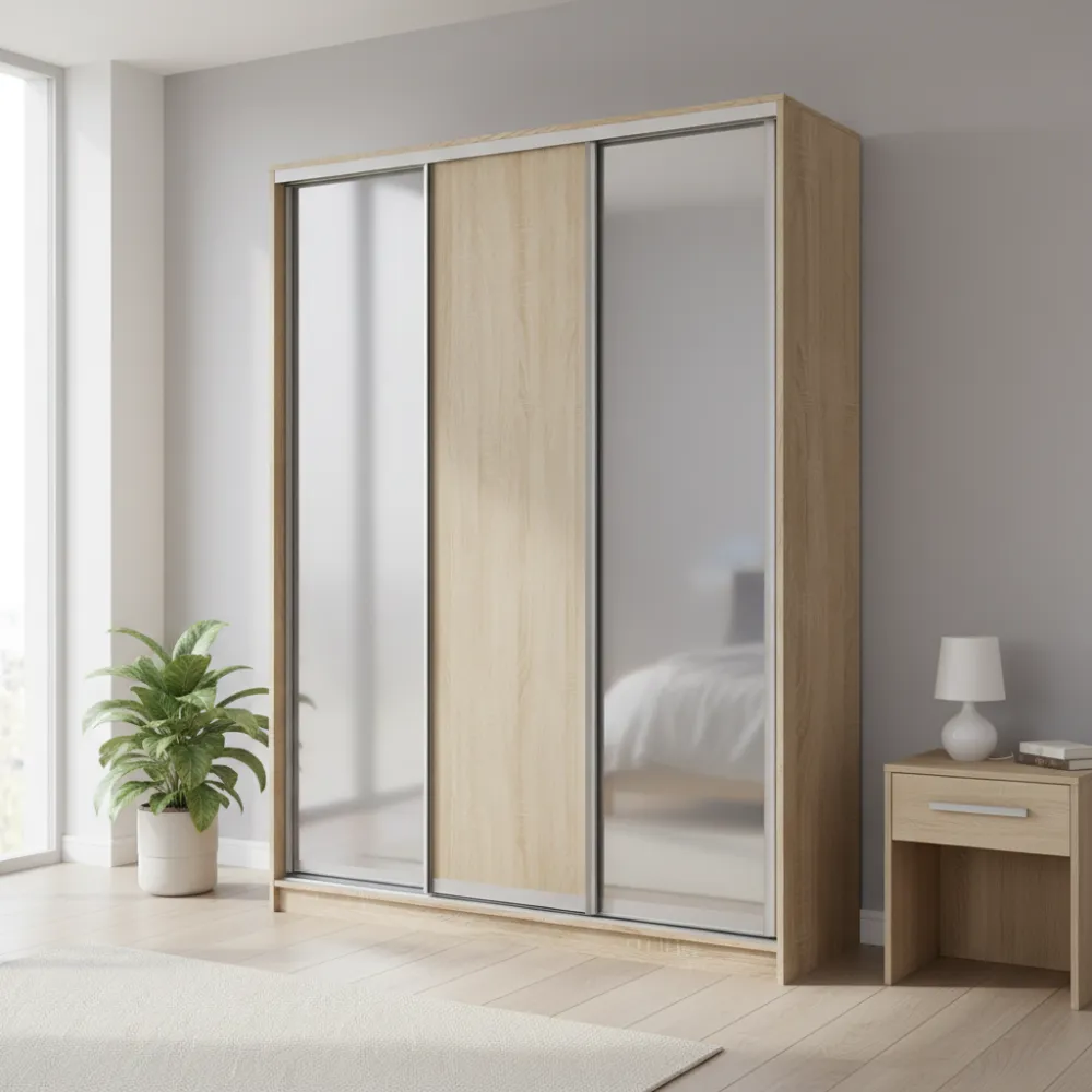 Характеристики Шкаф-купе трехдверный 1900х450х2400 мм Дуб Сонома ДСП + Зеркало EШК 3.2.24.45.19