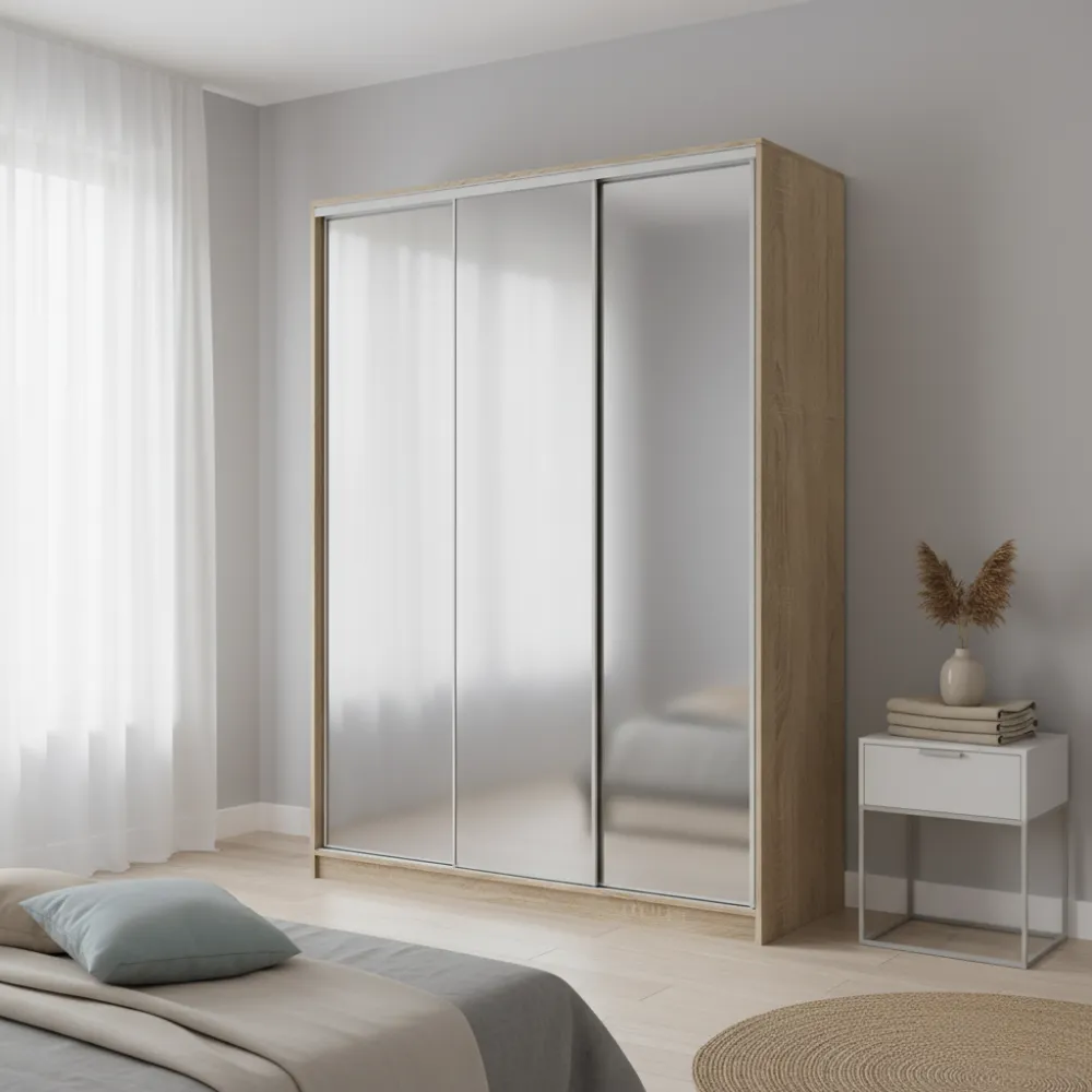 Характеристики Шкаф-купе трехдверный 1900х600х2400 мм Дуб Сонома Зеркало EШК 3.2.24.60.19.1