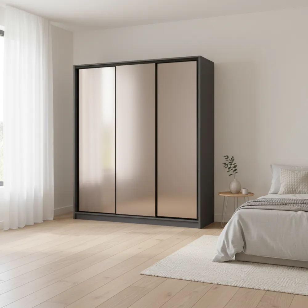 Характеристики Шкаф-купе трехдверный 2000х450х2100 мм Антрацит Зеркало EШК 3.1.21.45.20
