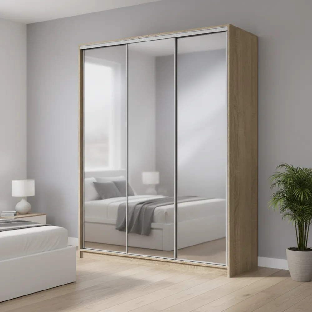 Характеристики Шкаф-купе трехдверный 2000х600х2400 мм Дуб Сонома Зеркало EШК 3.1.24.60.20.2