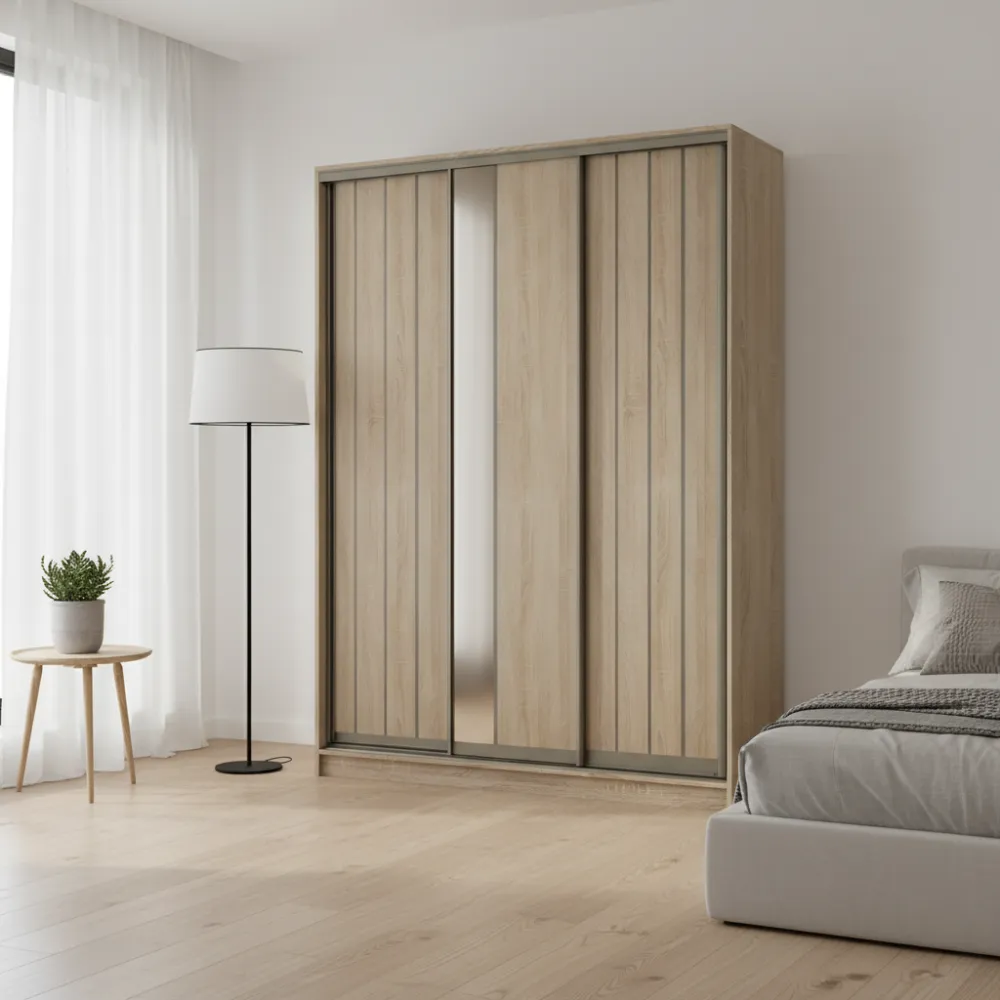 Шкаф-купе трехдверный SENAME-Line 2000х600х2700 мм Дуб Сонома ДСП + Зеркало EКШК 3.4.27.60.20