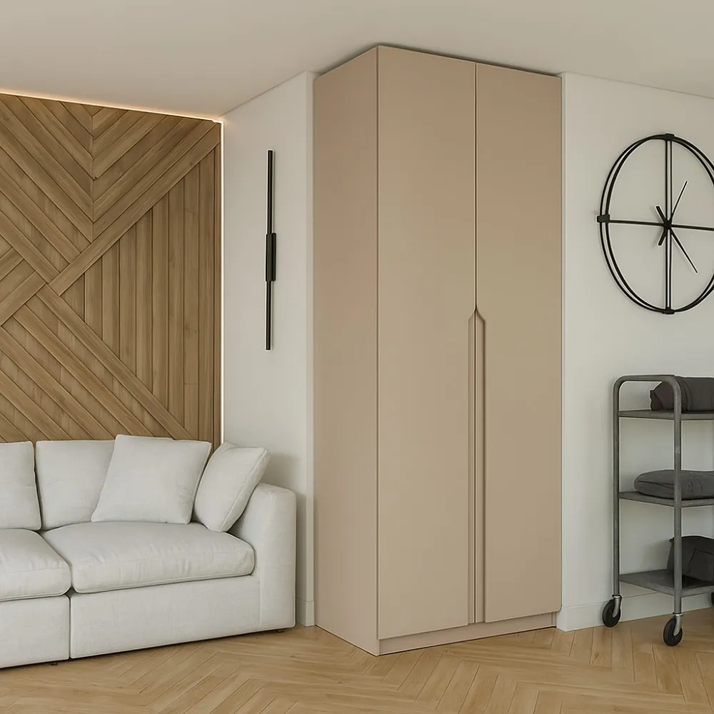 Характеристики Шкаф распашный ШР1 2100х800х600 мм корпус ДСП Кашемир фасад МДФ краска NCS S 2002-Y50R (Шелковистый мат) фрезерованная ручка V