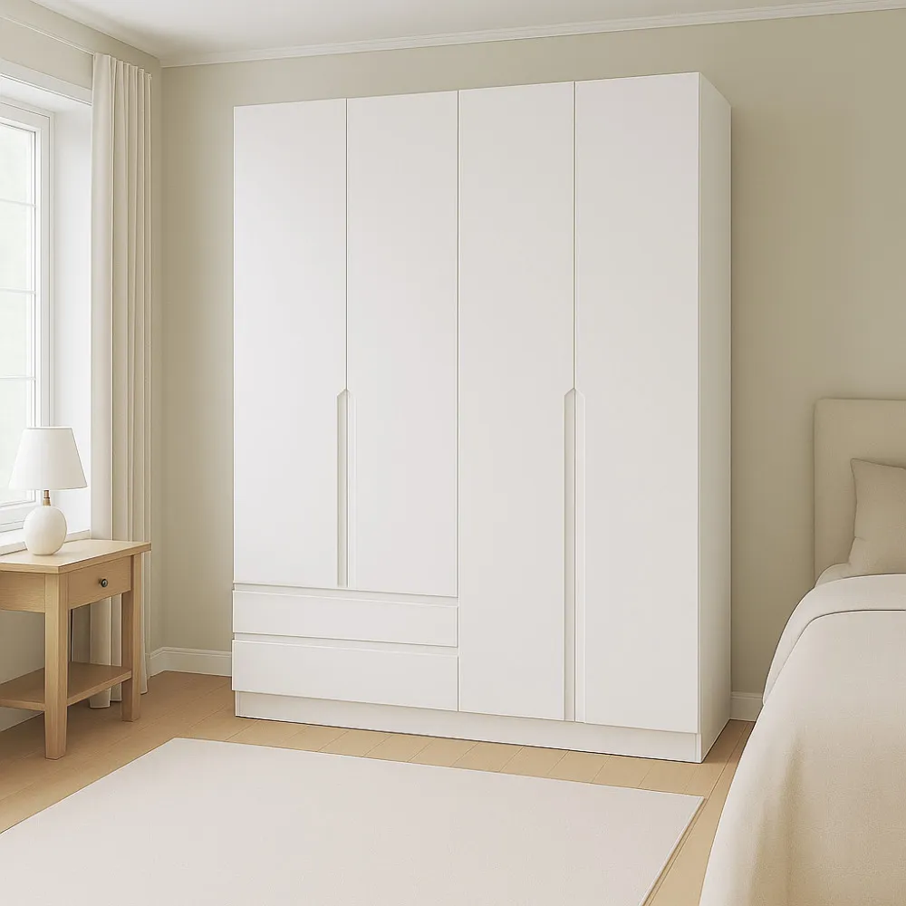 Характеристики Шкаф распашный ШР5 2100х1200х450 мм корпус ДСП Белый фасад МДФ краска Белый (RAL9003) фрезерованные ручки V и J