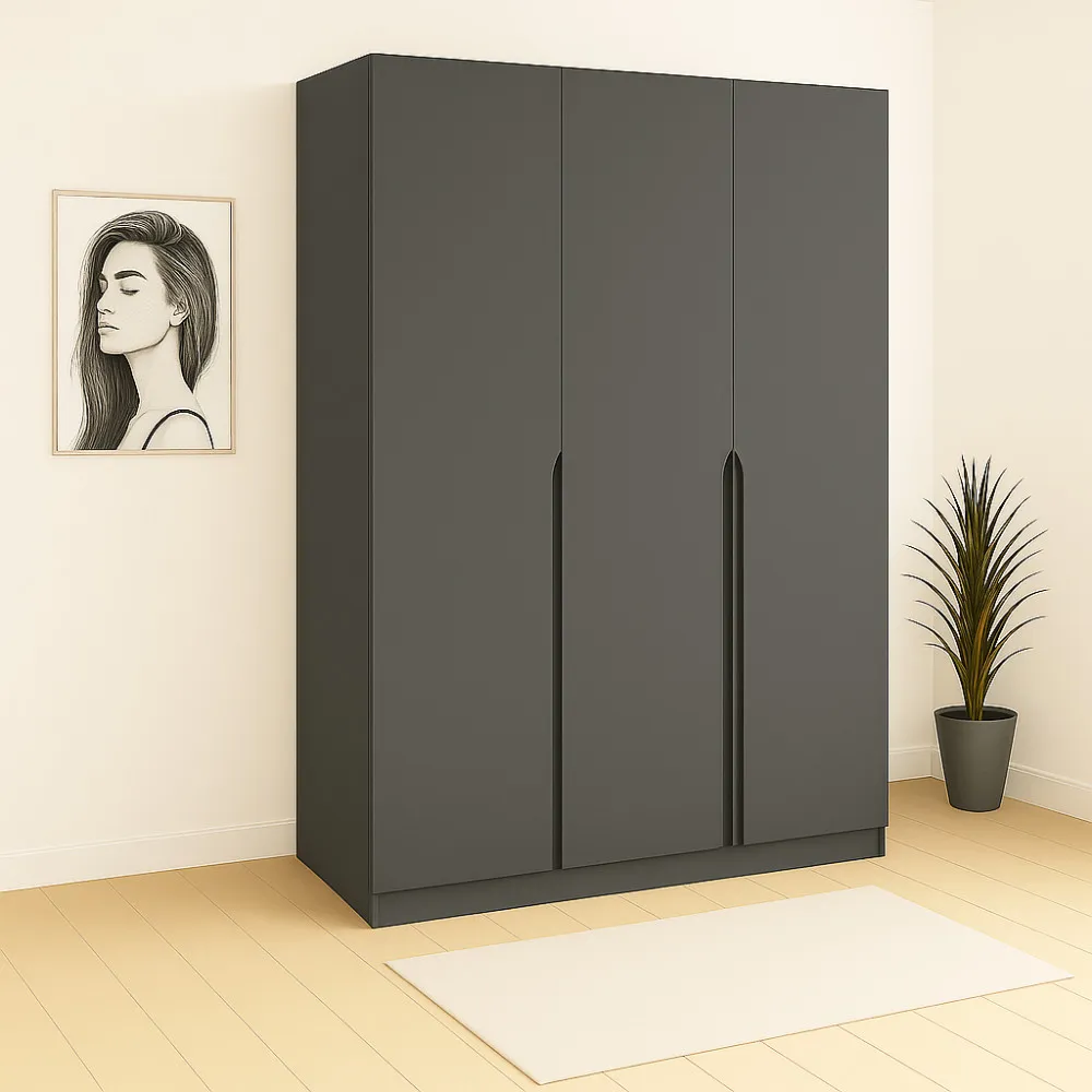 Шкаф распашный ШР6 2100х1400х450 мм корпус ДСП Серый Графит фасад МДФ краска RAL7012 (Базальтовый серый) фрезерованная ручка V