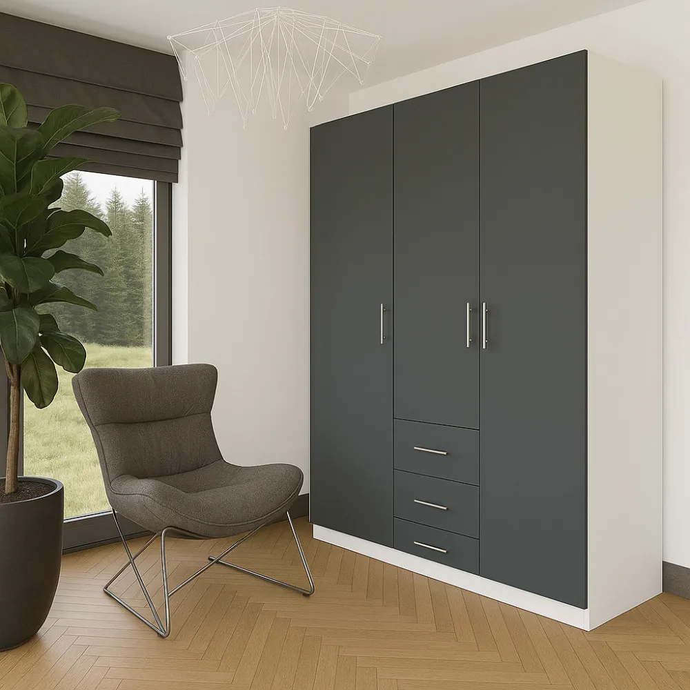 Шкаф распашный ШР7 2600х1400х600 мм корпус ДСП Белый фасад ДСП Антрацит