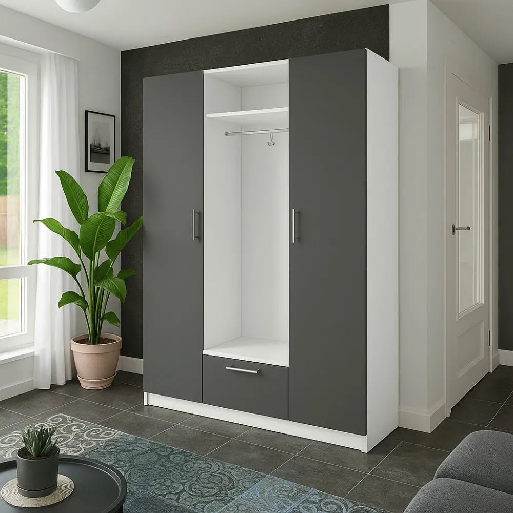 Характеристики Шкаф распашный ШР8 2600х1600х600 мм корпус ДСП Белый фасад ДСП Серый Графит