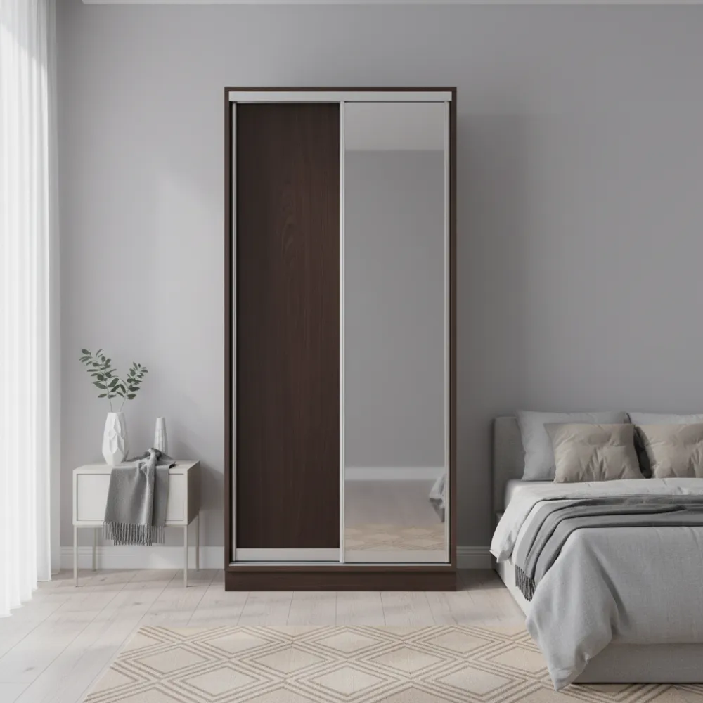 Раздвижные двери помогают экономить пространство — идеальны для небольших помещений. Гарантия от производителя — 18 месяцев. Модель предназначена для хранения одежды, обуви, текстиля и других вещей. Современный минималистичный стиль подойдёт для любого интерьера.