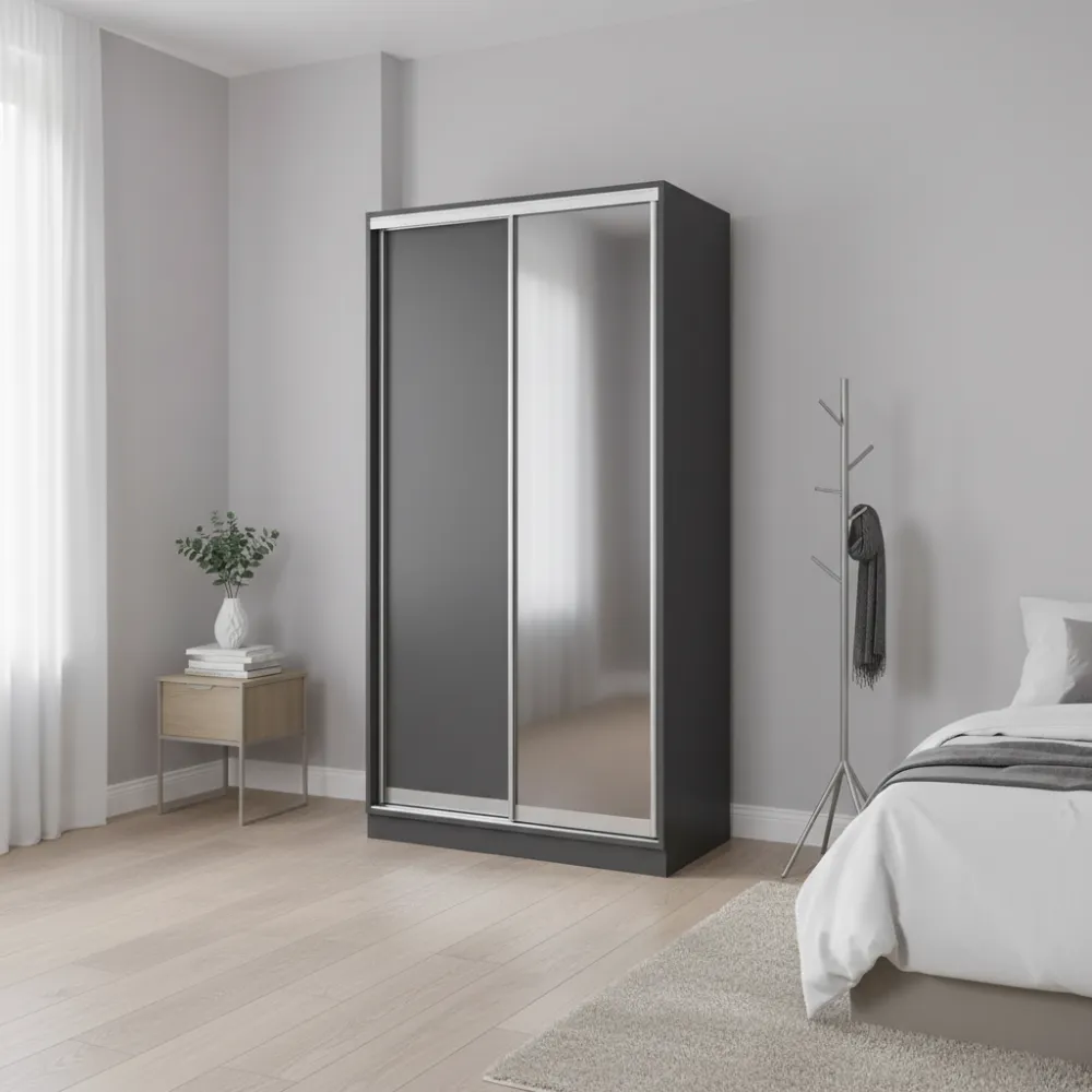 Раздвижные двери помогают экономить пространство — идеальны для небольших помещений. Гарантия от производителя — 18 месяцев. Модель предназначена для хранения одежды, обуви, текстиля и других вещей. Современный минималистичный стиль подойдёт для любого интерьера.