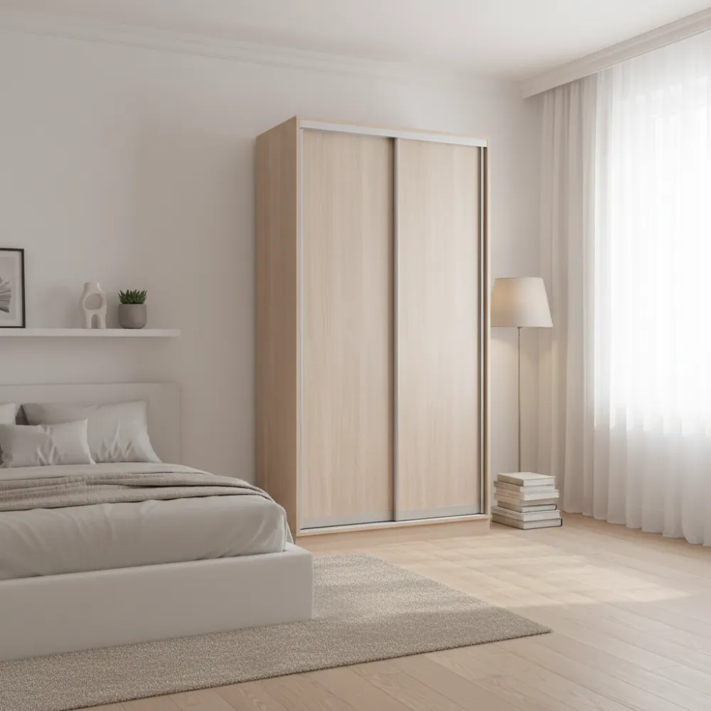 Раздвижные двери помогают экономить пространство — идеальны для небольших помещений. Гарантия от производителя — 18 месяцев. Модель предназначена для хранения одежды, обуви, текстиля и других вещей. Современный минималистичный стиль подойдёт для любого интерьера.