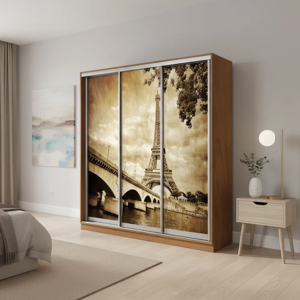 Доступные варианты изготовления фасадов: ДСП, фотопечать, зеркало или художественное матирование.