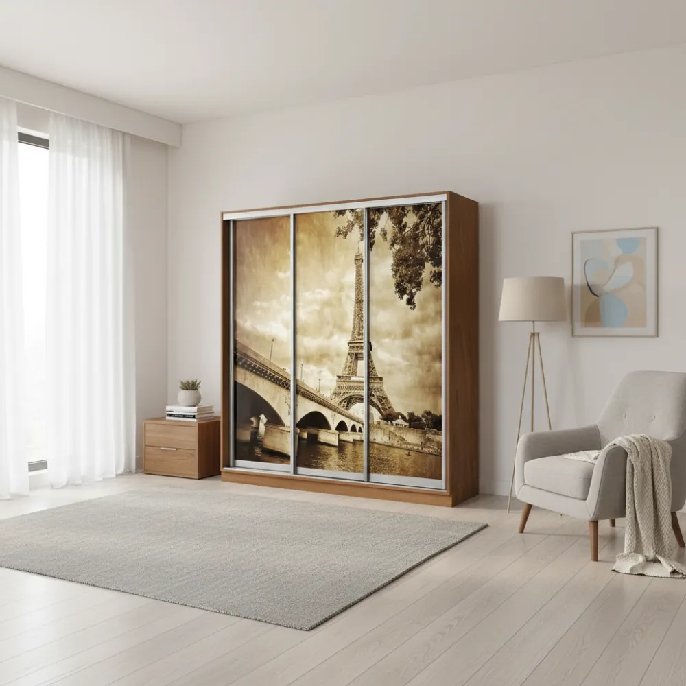 Доступные варианты изготовления фасадов: ДСП, фотопечать, зеркало или художественное матирование.